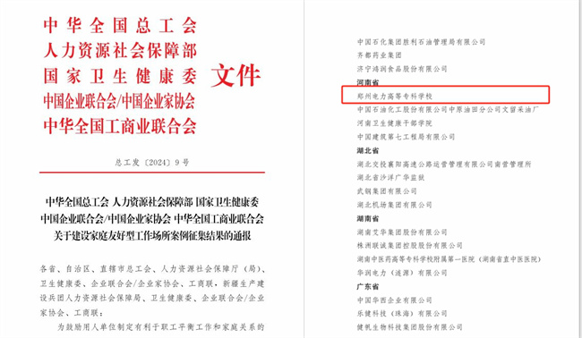 鄭州電力高等專科學校入圍全國建設(shè)家庭友好型工作場所案例
