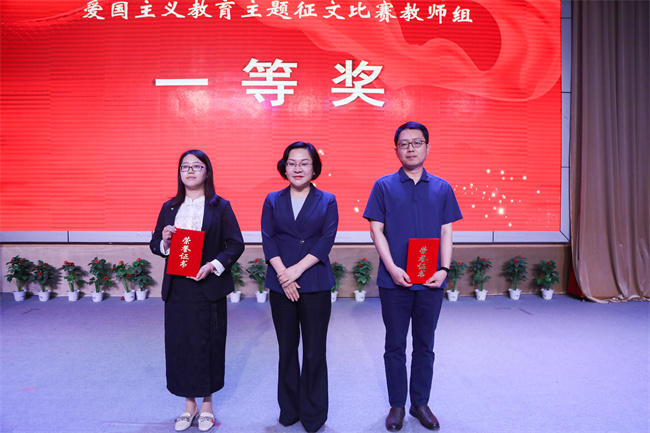 黨委副書記肖世才宣讀《中共鄭州職業(yè)技術(shù)學(xué)院委員會關(guān)于公布愛國主義教育主題征文比賽評選結(jié)果的通知》,宣布獲獎師生名單。