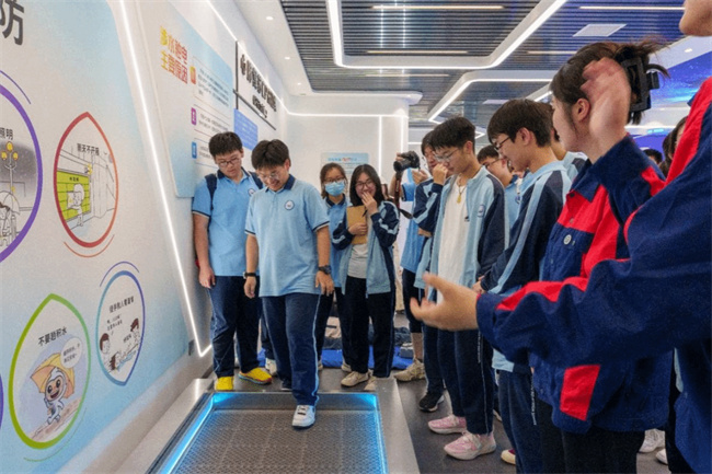 在電力學(xué)院講解團(tuán)成員的帶領(lǐng)下,第47高級(jí)中學(xué)的學(xué)生們首先參觀了電力安全實(shí)訓(xùn)室,通過(guò)模擬涉水漏電、跨步電壓觸電以及電弧灼傷等場(chǎng)景,讓學(xué)生們親身體驗(yàn)并認(rèn)識(shí)到安全用電的重要性。接著,學(xué)生們又參觀了無(wú)人機(jī)電力巡檢實(shí)訓(xùn)室、綠色智慧電力虛擬仿真實(shí)訓(xùn)基地以及220kV智能變電站實(shí)訓(xùn)基地,通過(guò)虛實(shí)結(jié)合的方式直觀了解了電力生產(chǎn)環(huán)境、無(wú)人機(jī)巡檢技術(shù)以及電力設(shè)備結(jié)構(gòu)特征。