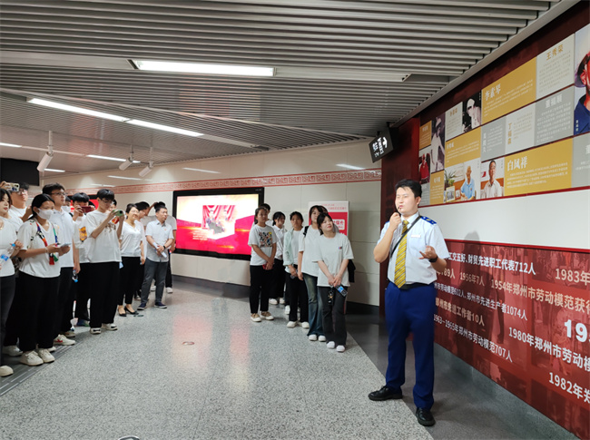 鄭州勞模精神主題車站是鄭州地鐵集團(tuán)傾心打造的一座以弘揚(yáng)“勞模精神、勞動(dòng)精神、工匠精神”為主題的車站。車站主題分為三部分,分別是“點(diǎn)亮勞動(dòng)之光”“禮贊勞動(dòng)之美”“唱響勞動(dòng)之歌”。“點(diǎn)亮勞動(dòng)之光”以工匠紅為主色彩,以城市勞動(dòng)者的背影與工匠精神內(nèi)涵相呼應(yīng);“禮贊勞動(dòng)之美” 以“匠”字為設(shè)計(jì)元素,設(shè)計(jì)了勞動(dòng)模范人物代表展示區(qū)、參觀拍照打卡區(qū)、榮譽(yù)展示區(qū),讓乘客在跨越時(shí)空的互動(dòng)中更加深刻地感受三種精神,鼓勵(lì)更多人通過(guò)辛勤勞動(dòng)實(shí)現(xiàn)人生夢(mèng)想,創(chuàng)造美好未來(lái);“唱響勞動(dòng)之歌”以“五一之路”為主要內(nèi)容,展示了河南工人運(yùn)動(dòng)不同時(shí)期的發(fā)展歷程。