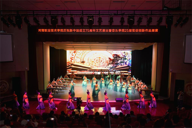 中新河南網(wǎng)5月24日電(崔琳婕) 5月23日上午,河南職業(yè)技術(shù)學(xué)院在音樂廳舉辦“青春曲 黃河頌 中國夢”慶祝新中國成立75周年文藝演出暨學(xué)生實訓(xùn)創(chuàng)新作品展演活動。校長夏新顏,校黨委副書記、紀(jì)委書記田華,副校長肖瓏、李玉峰出席活動。部分職能部門負(fù)責(zé)人、校企合作單位代表及音樂學(xué)院全體師生觀看演出。