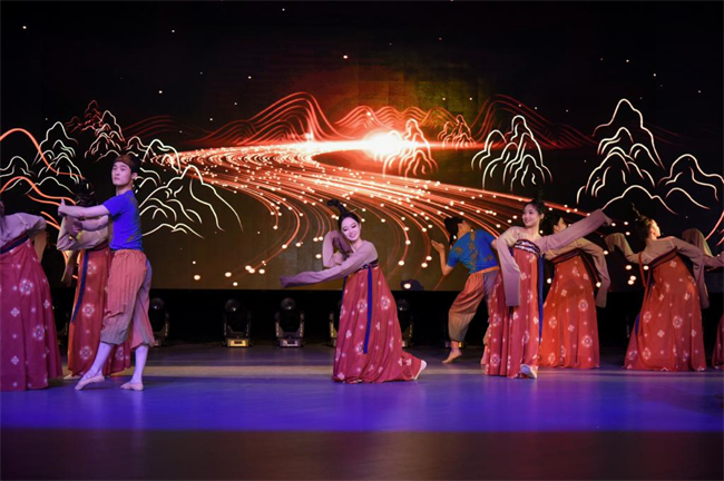 演出在開場樂舞表演中拉開序幕,展現(xiàn)了一幅盛世華夏、天地人和的盛大場面。展演中,聲樂《槐花幾時開》《花兒與少年》《我愛你中國》等作品,師生用歌聲與表演展示了黃河流域地區(qū)的風(fēng)土人情,歌頌了對祖國的熱愛。器樂《牧民新歌》《復(fù)興之路》等作品,動人的琴聲展現(xiàn)了大國的風(fēng)貌與氣韻。舞蹈《在水一方》《一條大河》等作品,演員用舞蹈語言展示了母親河壯美的畫卷,給觀眾帶來極致的審美體驗、傳遞了豐富的情感價值和精神力量。情景朗誦《千年之約》,一場圣人先賢們的對話與哲思,使現(xiàn)場觀眾洞見了前人的智慧,在古今穿梭中感受厚重的文化內(nèi)涵。環(huán)保時裝秀《綠裳黃河》別出心裁,用舊物做時裝,在時裝中體現(xiàn)黃河文化精神內(nèi)涵。