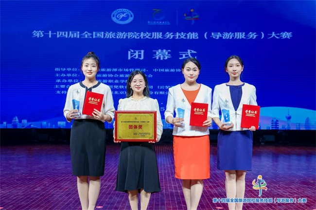 中新河南網(wǎng)5月28日電(魏金嬋) 5月24日至26日,第十四屆全國(guó)旅游院校服務(wù)技能(導(dǎo)游服務(wù))大賽在鄭州舉行。河南職業(yè)技術(shù)學(xué)院文化旅游學(xué)院學(xué)生崔燦燦和周雅琪雙雙獲普通話導(dǎo)游服務(wù)賽項(xiàng)一等獎(jiǎng),薛晶晶和郭閃閃分獲英語導(dǎo)游服務(wù)賽項(xiàng)一等獎(jiǎng)和二等獎(jiǎng);學(xué)?偝煽(jī)位居高等院校組(含本專科)第5位,獲大賽團(tuán)體獎(jiǎng),這也刷新了學(xué)校歷屆比賽最好成績(jī),實(shí)現(xiàn)新突破。