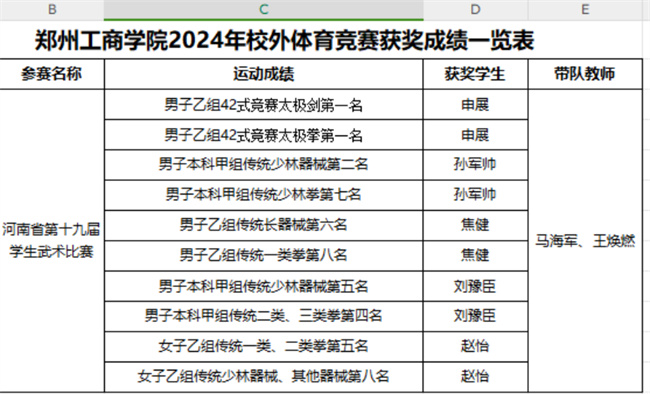 鄭州工商學院武術隊在河南省第十九屆學生武術比賽中斬獲2金1銀