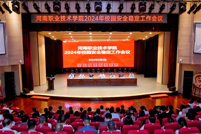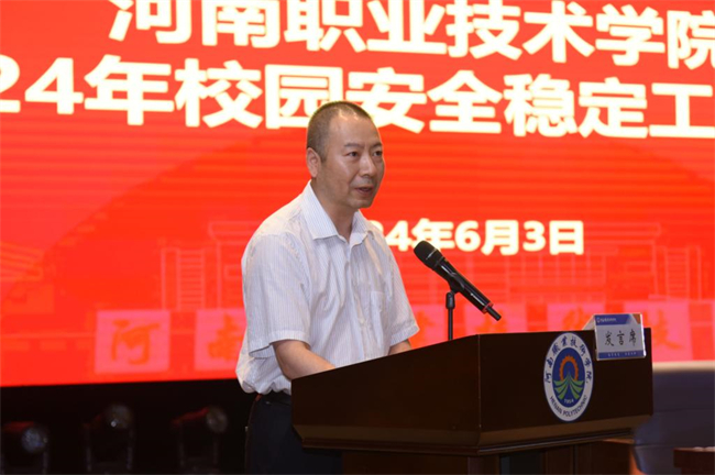 中新河南網(wǎng)6月4日電(秦浩) 6月3日下午,河南職業(yè)技術(shù)學(xué)院召開2024年校園安全穩(wěn)定工作會議,認(rèn)真貫徹落實省委教育工委、省教育廳關(guān)于安全工作的部署要求,總結(jié)學(xué)校安全穩(wěn)定工作經(jīng)驗,動員部署下半年安全穩(wěn)定工作。校黨委書記厲勵出席會議并講話。全體校領(lǐng)導(dǎo)出席會議。學(xué)校中層副職及以上干部,黨委學(xué)生工作部、黨委保衛(wèi)工作部、團委全體人員及專兼職輔導(dǎo)員參加會議。會議由校長夏新顏主持。