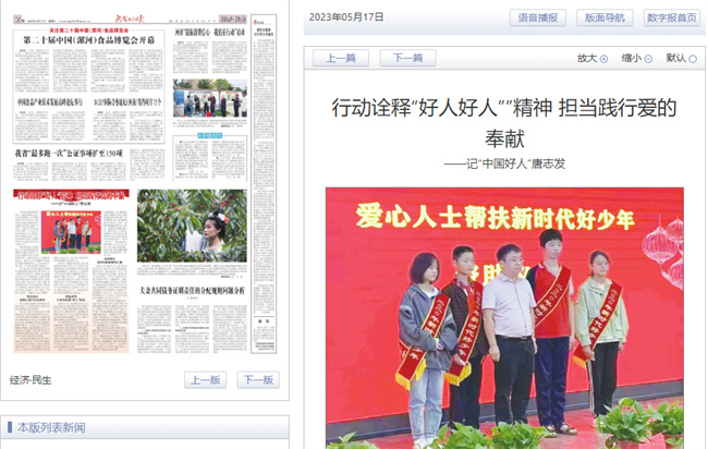 《河南工人日報》以“行動詮釋好人精神 擔(dān)當(dāng)踐行愛的奉獻”為題刊登唐志發(fā)好人事跡
