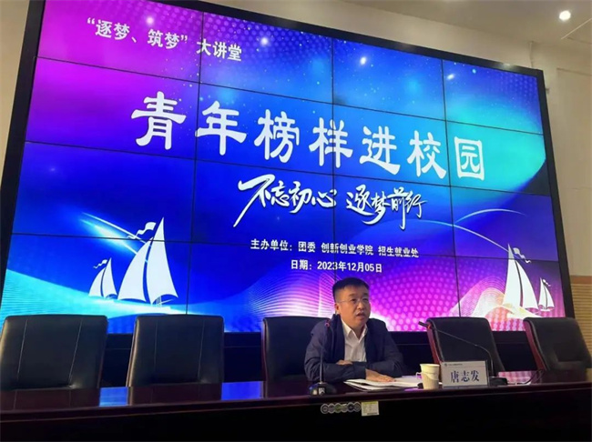 2023年12月5日,唐志發(fā)回到學(xué)校參加“青年榜樣進校園”活動,與師生分享自己的創(chuàng)業(yè)路