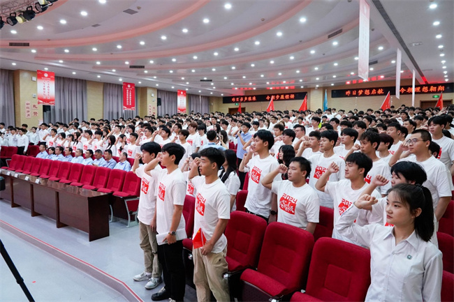 “我親愛的老師啊…感謝一路上有您…”典禮最后,9位2024屆畢業(yè)生代表以歌曲和朗誦的形式向母校和老師們表達了由衷的感謝。全體畢業(yè)生跟隨領(lǐng)誓人莊嚴宣誓:“不忘初心,追逐夢想;牢記使命,堅守信仰;勇?lián)熑,敬業(yè)愛崗;努力爭做,能工巧匠;志存高遠,奮發(fā)向上;為人生添彩,為母校爭光!”全體畢業(yè)生的激昂誓言,吹響了勇攀高峰的青春號角。