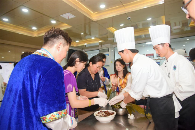 7日中午,校黨委副書記田華參加了黨委宣傳部舉辦、智慧健康學(xué)院承辦的“民族團(tuán)結(jié)一家親,端午安康‘粽’關(guān)情”民族團(tuán)結(jié)文化活動(dòng)。漢族學(xué)生代表介紹了端午節(jié)起源和傳統(tǒng)文化習(xí)俗,來(lái)自高山族、苗族、蒙古族的三位學(xué)生代表分別分享了各自民族慶祝端午節(jié)的習(xí)俗和感受;新疆維吾爾族師生代表表演了吉他彈唱《月亮》和舞蹈《中華民族一家親》,用手牽手、心連心的形式,促進(jìn)各民族守望相助、手足情深,讓“河職石榴紅”抱得更緊更密。隨后,田華為不同民族的師生代表贈(zèng)送了香包,送上了節(jié)日祝福,并與師生一起動(dòng)手包粽子,共同感受傳統(tǒng)節(jié)日的文化內(nèi)涵和民俗文化魅力。