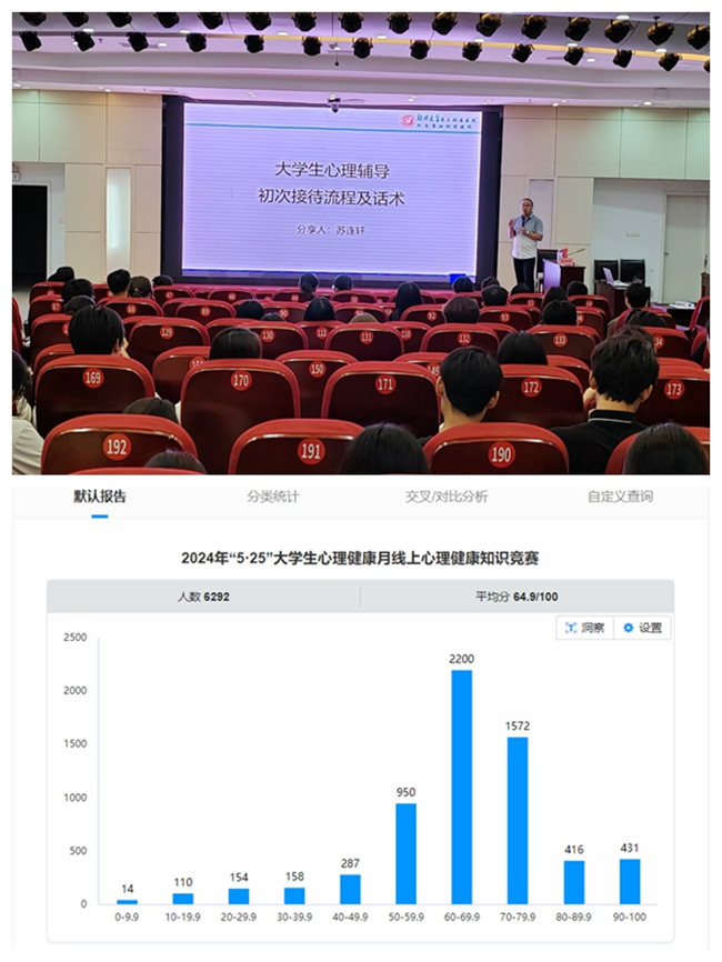 堅持以德育心。將學(xué)生心理健康教育貫穿思政育人工作全過程,融入“三全育人”各環(huán)節(jié),引導(dǎo)學(xué)生扣好人生第一粒扣子。通過《大學(xué)生常見心理問題識別及朋輩心理輔導(dǎo)技巧》專題講座,