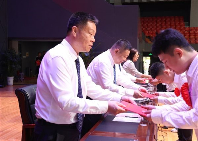 王四戰(zhàn)為畢業(yè)生代表頒發(fā)“新愚公素養(yǎng)護(hù)照”。