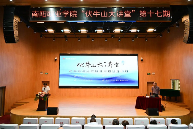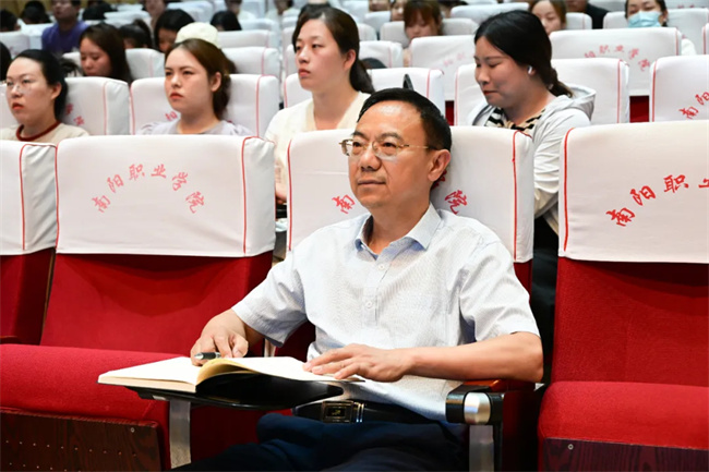 本次講座特邀鄭州西亞斯學(xué)院管理學(xué)教授、河南省優(yōu)秀專家趙學(xué)義教授主講。南陽職業(yè)學(xué)院黨委書記魏文君教授出席講座,各學(xué)院骨干教師共300余人參加講座,講座由副校長梁秀山主持。