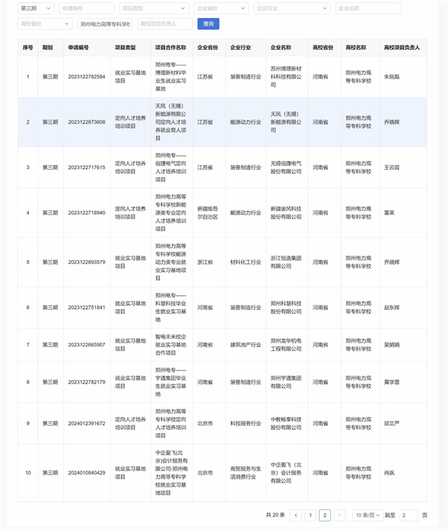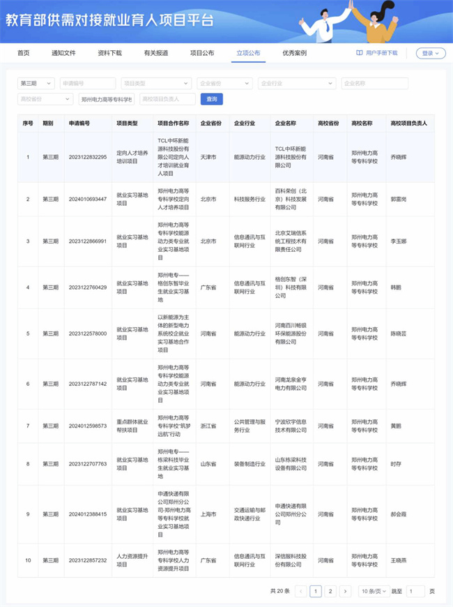 鄭州電力高等?茖W(xué)校高度重視項(xiàng)目申報(bào)工作,結(jié)合學(xué)校專業(yè)特色、人才培養(yǎng)、困難畢業(yè)生幫扶及就業(yè)需求,先后多次組織項(xiàng)目申報(bào)論證,與用人單位積極聯(lián)系共同申報(bào),經(jīng)教育部組織專家審核,最終確認(rèn)立項(xiàng)第三期供需對(duì)接就業(yè)育人項(xiàng)目20項(xiàng)。本次項(xiàng)目的成功立項(xiàng)是鄭州電力高等?茖W(xué)校教育質(zhì)量、專業(yè)設(shè)置與市場(chǎng)需求度、對(duì)接就業(yè)指導(dǎo)與服務(wù)能力、產(chǎn)教融合程度、創(chuàng)新能力、社會(huì)認(rèn)可度、綜合實(shí)力的體現(xiàn)和認(rèn)可,也為學(xué)校提升校企協(xié)同育人質(zhì)效奠定了基礎(chǔ)。