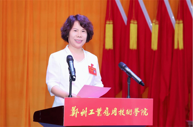 校黨委書記孫愛芳同志代表中共鄭州工業(yè)應(yīng)用技術(shù)學(xué)院第一屆委員會作了題為《錨定目標(biāo) 篤行實干 為建設(shè)特色鮮明的高水平應(yīng)用型大學(xué)而團結(jié)奮斗》的報告。報告實事求是地總結(jié)了學(xué)校第一次黨代會以來的工作成績和基本經(jīng)驗,明確了下一步黨的建設(shè)工作指導(dǎo)思想、發(fā)展目標(biāo)及主要任務(wù),為學(xué)校開啟新征程、把各項事業(yè)推向新境界描繪了新藍(lán)圖。