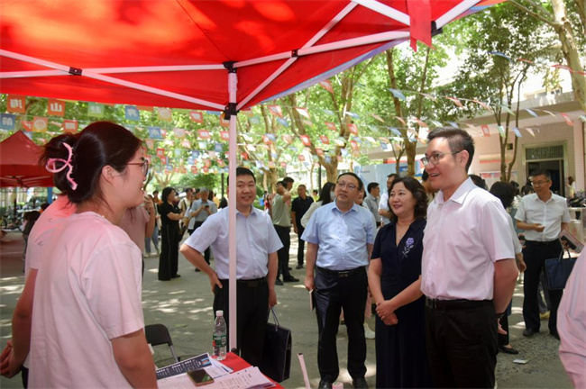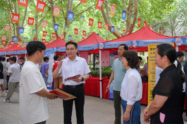 中新河南網(wǎng)6月29日電(王紅勝) 6月28日,河南職業(yè)技術(shù)學(xué)院舉辦2024屆畢業(yè)生夏季雙選會(huì)暨“宏志助航”專場(chǎng)招聘會(huì),鄭州宇通集團(tuán)有限公司等148家省內(nèi)外優(yōu)質(zhì)企業(yè)前來(lái)招聘,提供就業(yè)崗位1.5萬(wàn)余個(gè)。校黨委書(shū)記厲勵(lì)、校長(zhǎng)夏新顏等全體校領(lǐng)導(dǎo)深入雙選會(huì)現(xiàn)場(chǎng)了解招聘情況,并與畢業(yè)生和企業(yè)代表進(jìn)行交流。