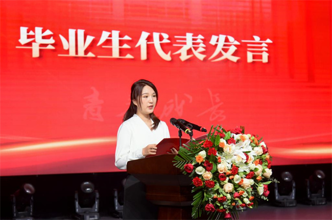 數(shù)字創(chuàng)意與設(shè)計(jì)學(xué)院學(xué)生時(shí)融娜作為畢業(yè)生代表發(fā)言