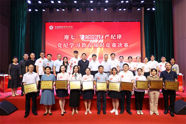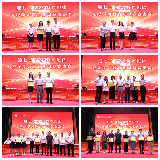 決賽以“迎七一強黨性嚴紀律”為主題,題目涵蓋《中國共產黨章程》、新修訂的《中國共產黨紀律處分條例》等多項黨紀黨規(guī)制度,進一步強化黨紀學習教育成果,增強貫徹執(zhí)行黨紀黨規(guī)的自覺性堅定性。決賽由必答題、搶答題、風險題、附加題等四個環(huán)節(jié)組成。競賽中,參賽選手們拼手速,比腦力,以良好的心理素質、扎實的理論素養(yǎng),沉著應對、團結配合,現(xiàn)場氣氛緊張熱烈,比分你追我趕,得分點處更是引起觀眾陣陣掌聲,精彩不斷。經過激烈的比拼,公共基礎部黨總支代表隊獲得一等獎;臨床醫(yī)學院黨總支代表隊、護理學院黨總支代表隊獲得二等獎;教務教輔黨總支代表隊、公共衛(wèi)生與健康管理學院黨總支代表隊、檢驗學院黨總支代表隊獲得三等獎。思想政治教學研究部直屬黨支部代表隊、基礎醫(yī)學部直屬黨支部代表隊、機關黨總支代表隊、繼續(xù)教育部直屬黨支部代表隊、醫(yī)學技術學院黨總支代表隊、后勤服務黨總支代表隊、藥學院黨總支代表隊、離退休職工黨總支代表隊榮獲優(yōu)秀獎。公共基礎部黨總支代表隊和離退休職工黨總支代表隊榮獲優(yōu)秀組織獎。公共基礎部黨總支代表隊參賽選手王藝凝、臨床醫(yī)學院黨總支代表隊參賽選手賴亦斐、教務教輔黨總支代表隊參賽選手陳巧蓮獲得“最佳選手”榮譽稱號。
