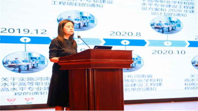 教務(wù)處處長(zhǎng)耿聰慧從專業(yè)群組成、建設(shè)完成情況、標(biāo)志性成果、規(guī)劃及未來四個(gè)方面匯報(bào)“會(huì)計(jì)專業(yè)群”建設(shè)整體情況。學(xué)院經(jīng)過五年的項(xiàng)目建設(shè),各項(xiàng)指標(biāo)按照預(yù)期完成,且部分指標(biāo)完成度遠(yuǎn)超預(yù)期,取得了可喜的標(biāo)志性成果。項(xiàng)目總體目標(biāo)實(shí)現(xiàn)程度較高,為新一輪高水平專業(yè)群建設(shè)打下了堅(jiān)實(shí)的基礎(chǔ)。