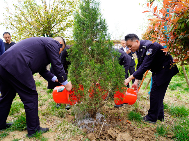2024年4月1日,老河口市公安局民警種下一棵紀(jì)念樹紀(jì)念靳斌。
