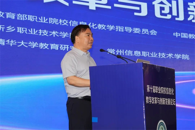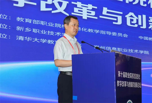 中新河南網(wǎng)7月19日電( 閆紅瑩 羅靜 ) 7月17日至18日,以“推進人智協(xié)同,共促數(shù)字職教”為主題的第十屆職業(yè)院校信息化教學改革與創(chuàng)新發(fā)展論壇在新鄉(xiāng)舉行。本次論壇由教育部職業(yè)院校信息化教學指導委員會、中國教育發(fā)展戰(zhàn)略學會未來教育專業(yè)委員會主辦,新鄉(xiāng)職業(yè)技術學院承辦,清華大學教育研究院、常州信息職業(yè)技術學院協(xié)辦。