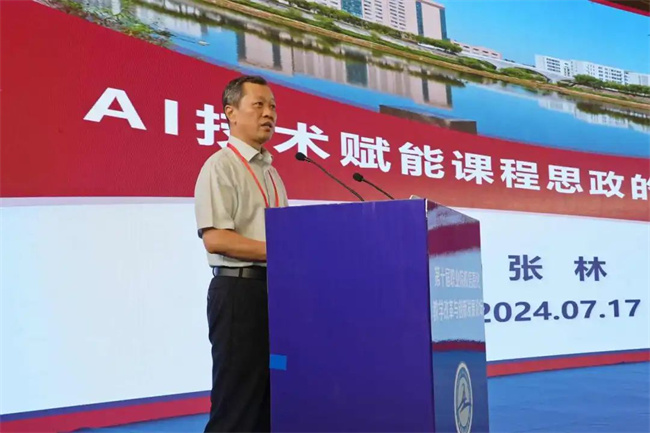 張林教授圍繞“AI技術賦能課程思政探索與實踐”這一主題,指出了當前職業(yè)教育課程思政教學中存在的難題,如目標體系不健全、課程與思政難融合、教學資源顆粒度不夠、缺乏個性化教學與評價等,并提出當前AI技術的發(fā)展為課程思政教學提供了豐富的工具,如何通過人工智能找到專業(yè)知識和思政目標的聯(lián)結(jié)點,是職業(yè)教育課程思政建設亟需突破的問題。