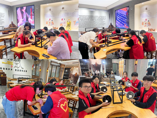 實(shí)踐團(tuán)體驗鏨刻工藝和畫琺瑯工藝