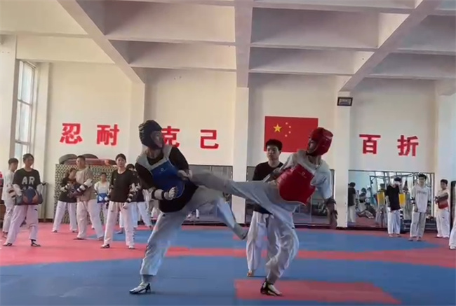 為備戰(zhàn)比賽,汝州職院跆拳道隊(duì)隊(duì)員利用平時(shí)業(yè)余時(shí)間以及暑假進(jìn)行刻苦訓(xùn)練,特別是在賽前,在胡鵬老師帶領(lǐng)下,隊(duì)員們前往體校進(jìn)行了5天集訓(xùn),與專業(yè)運(yùn)動(dòng)員進(jìn)行切磋交流,提高隊(duì)員自身技術(shù)水平。