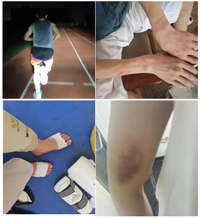 榮譽(yù)背后皆是汗水和不易,特別是對(duì)抗性體育競賽免不了會(huì)受傷。在此次省級(jí)比賽現(xiàn)場便出現(xiàn)了意外,王逸飛同學(xué)在競技男子63KG,1/8進(jìn)入1/4比賽時(shí),胳膊受傷,但是他堅(jiān)持完成了該場比賽最后一局,最終獲得勝利。賽后,他被醫(yī)生診斷為骨折,按照比賽要求,只能被迫放棄比賽。胡鵬老師也在比賽期間,連續(xù)高燒兩天,仍然堅(jiān)持為參賽學(xué)生加油鼓氣和作賽事指導(dǎo)。無論是運(yùn)動(dòng)員還是教練員在這次比賽中都充分展示了永不放棄,敢于拼搏的體育精神。