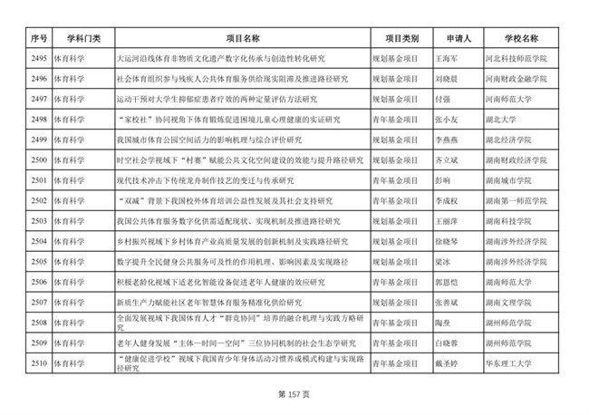 中新河南網8月5日電 近日,教育部社科司公布了2024年度教育部人文社會科學研究項目評審結果,湖南涉外經濟學院有2個項目獲批立項。體育學院徐曉琴老師的“鄉(xiāng)村振興視域下鄉(xiāng)村體育產業(yè)高質量發(fā)展的創(chuàng)新機制及實踐路徑研究”和梁冰老師的“數字提升全民健身公共服務可及性的作用機理、影響因素及實現路徑”獲批一般項目立項,這是該校體育學科首次獲批該類項目,實現了新的突破。