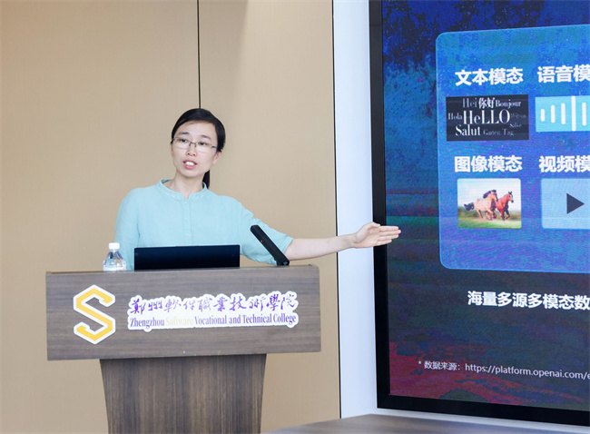 專家報(bào)告環(huán)節(jié),科大訊飛高教業(yè)務(wù)線人工智能方向技術(shù)總監(jiān)江金鳳博士圍繞人工智能趨勢(shì)、大模型教育變革與挑戰(zhàn)及大模型在教育中的應(yīng)用,作了題為《人工智能引領(lǐng)未來(lái)科技,大模型助力“哲學(xué)”變革》報(bào)告;河南新世紀(jì)拓普公司總經(jīng)理韓尊勝則以《高校產(chǎn)教融合路徑》為題,圍繞AI產(chǎn)業(yè)分布、結(jié)構(gòu)及人才培養(yǎng)體系,深入剖析了人工智能人才培養(yǎng)現(xiàn)狀與產(chǎn)教融合模式。
