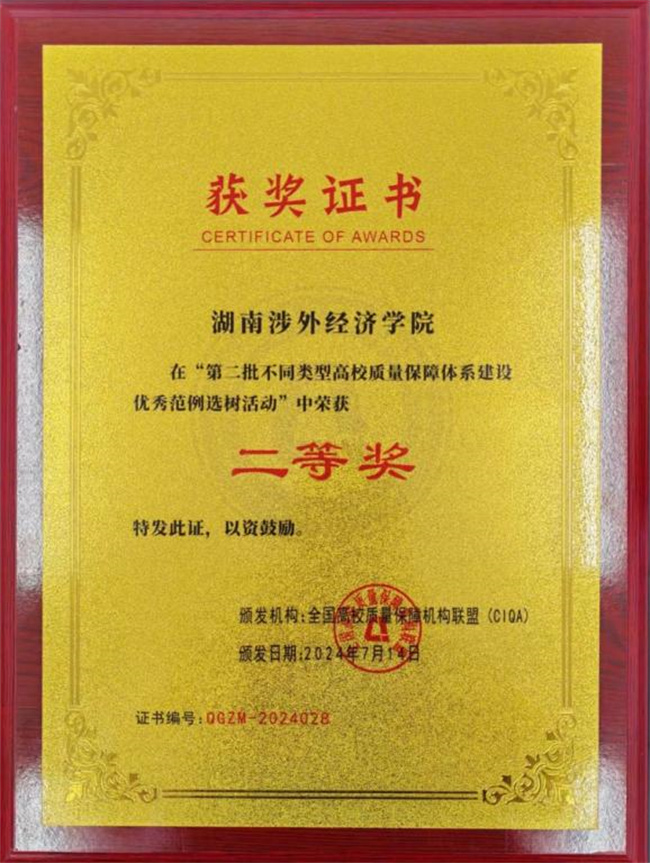 中新河南網(wǎng)8月9日電(唐立紅) 7月26日-27日,由全國高校質(zhì)量保障機構聯(lián)盟主辦的CIQA成立五周年(換屆)大會暨高校分類特色發(fā)展與質(zhì)量保障論壇在廣東省江門市舉行。會議公布了“第二批全國高校不同類型質(zhì)量保障體系建設優(yōu)秀范例”評選結果,湖南涉外經(jīng)濟學院榮獲普通本科院校組二等獎。