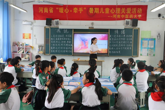 該活動是河南中醫(yī)藥大學(xué)攜手河南省婦聯(lián)開展的暑期社會心理服務(wù)項(xiàng)目,同時(shí)入選共青團(tuán)中央維護(hù)青少年權(quán)益部、中國青年報(bào)社開展的2024年全國大學(xué)生暑期“三下鄉(xiāng)”社會實(shí)踐之“心理健康青春行”專項(xiàng)活動;顒佑珊幽鲜「咝9鶑┫夹睦斫】到逃麕煿ぷ魇覉F(tuán)隊(duì)成員指導(dǎo),帶領(lǐng)心理社團(tuán)和心理委員一行16人組成“青”心筑夢實(shí)踐團(tuán),開展青少年心理健康服務(wù)活動。據(jù)悉,今年通過“心科普”“心服務(wù)”“心調(diào)研”等方式,運(yùn)用醫(yī)學(xué)專業(yè)知識與心理健康知識,開展了一系列豐富多彩、寓教于樂的實(shí)踐活動,旨在通過多元化教學(xué)手段,促進(jìn)兒童身心健康,傳承弘揚(yáng)中華優(yōu)秀傳統(tǒng)文化,同時(shí)通過個案訪談、心理咨詢等方式,輔導(dǎo)改善困境兒童的心理及情感問題,為有效開展關(guān)愛服務(wù)工作提供依據(jù),助力兒童心理健康教育優(yōu)質(zhì)均衡發(fā)展,營造“人人關(guān)注未成年心理健康”的良好社會氛圍。