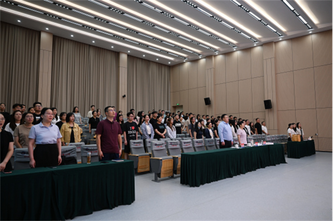 上午,培訓(xùn)班在莊嚴(yán)雄壯的國歌聲中拉開序幕。常務(wù)副校長劉衛(wèi)東向新入職教職工致歡迎詞并做講話。劉衛(wèi)東帶領(lǐng)大家回顧了學(xué)校的辦學(xué)歷程,詳細(xì)分析了學(xué)校發(fā)展現(xiàn)狀,展望了學(xué)校發(fā)展目標(biāo),明確了學(xué)校當(dāng)前“打造黨建引領(lǐng)發(fā)展融合體系”“打造‘三全育人’新亮點(diǎn)新品牌”兩項(xiàng)關(guān)鍵任務(wù),囑托全體新教職工要將師德培養(yǎng)作為職業(yè)發(fā)展的“第一課題”,樹牢教書育人、服務(wù)社會(huì)、服務(wù)國家的使命與擔(dān)當(dāng),要練就扎實(shí)過硬的本領(lǐng),以愛育愛,當(dāng)好學(xué)生專業(yè)發(fā)展和道德品格的“引路人”。
