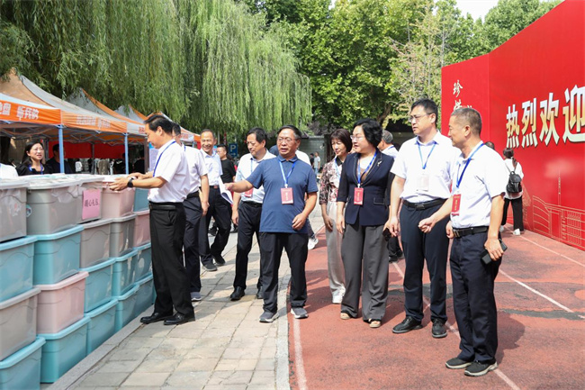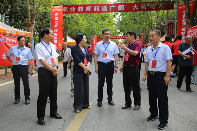 校領(lǐng)導(dǎo)在“綠色通道”迎新辦理點(diǎn)指導(dǎo)工作