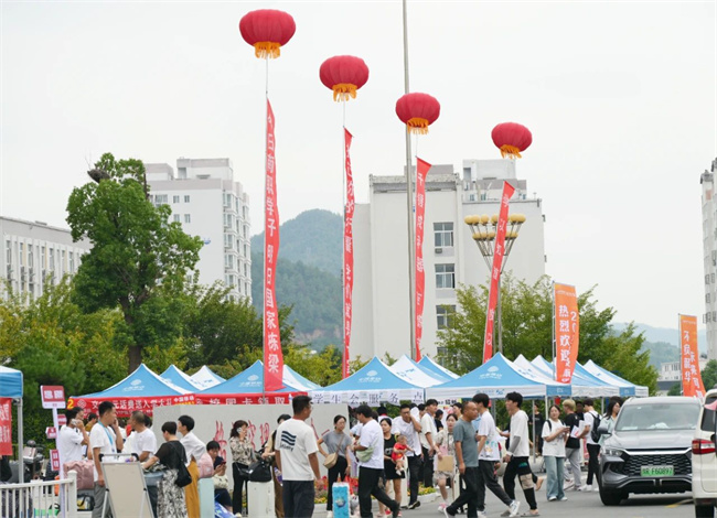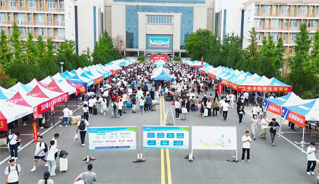 迎新現(xiàn)場,橫幅高掛,彩旗飄揚