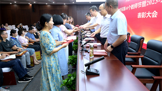 大會在莊嚴(yán)的國歌聲中拉開序幕。黨委副書記、工會主席姜葆亮宣讀了《河南質(zhì)量工程職業(yè)學(xué)院關(guān)于表彰2024年先進集體、優(yōu)秀教師和先進教育工作者的決定》,黨委委員、副院長金錚宣讀了《關(guān)于表彰2023-2024學(xué)年度優(yōu)秀輔導(dǎo)員(班主任)的決定》。與會院領(lǐng)導(dǎo)為獲得表彰的集體和個人代表進行了頒獎,會場氣氛熱烈,掌聲雷動。