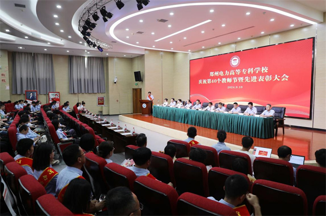 黨委書記楊義波在致辭中向受表彰的先進個人表示熱烈的祝賀,并向全校教職員工以及為學校改革、建設和發(fā)展付出辛勤汗水的一代代電專人,致以節(jié)日的祝福和敬意。他表示,今年以來,在鄭州電力高等專科學校黨委的堅強領導下,全校上下錨定新“雙高”建設,固強補弱、全面起勢,發(fā)展動能持續(xù)集聚,發(fā)展態(tài)勢持續(xù)向好,辦學聲譽持續(xù)響亮,發(fā)展引擎持續(xù)發(fā)力,各項工作均取得了顯著的成績。