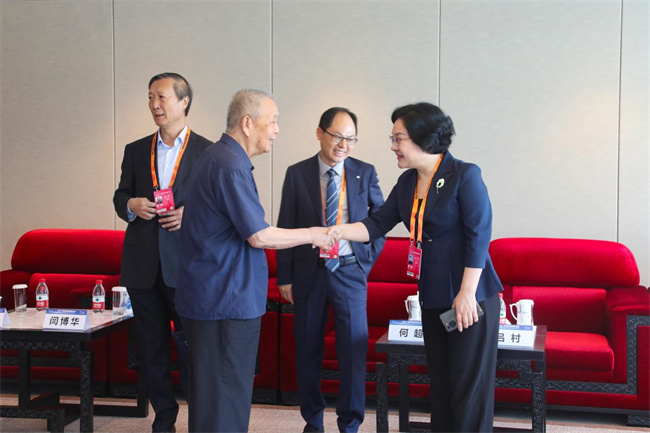 鄭州職業(yè)技術(shù)學(xué)院黨委書記呂村與參會領(lǐng)導(dǎo)熱情交流