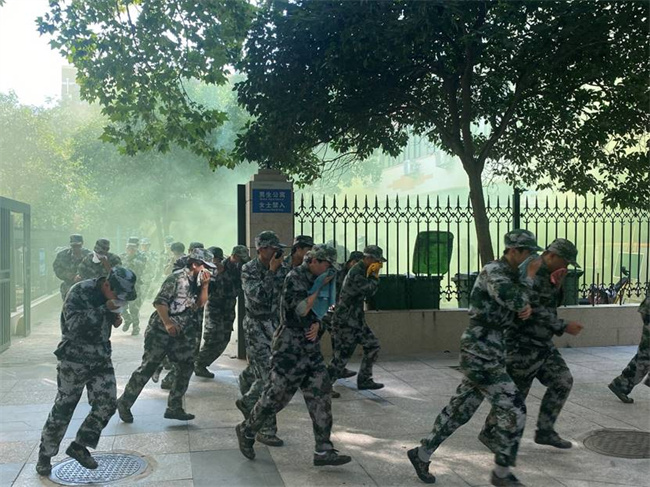軍訓(xùn)教官在學(xué)生宿舍樓投放消防演習(xí)發(fā)煙罐模擬火情,一時(shí)濃煙四起。隨后消防警報(bào)聲響起,本次應(yīng)急疏散逃生演練也拉開了序幕,同學(xué)們拿起濕毛巾,捂住口鼻,彎腰,在充滿煙霧的緊張環(huán)境中按照消防通道路線,有序、快速向指定地點(diǎn)進(jìn)行疏散。到達(dá)集合地點(diǎn)后,教官們迅速清點(diǎn)班級(jí)人數(shù),確保全部學(xué)生都及時(shí)撤離、無(wú)掉隊(duì)。