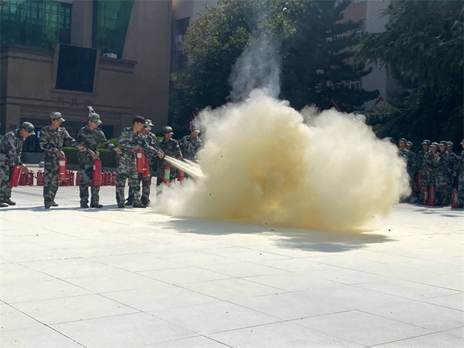 工作人員點(diǎn)燃了演習(xí)火堆,同學(xué)們依次領(lǐng)取滅火器,有序進(jìn)行滅火演練。伴隨著滅火干粉的噴出,火堆也被熄滅,同學(xué)們的滅火技能也得到了很好的鍛煉。