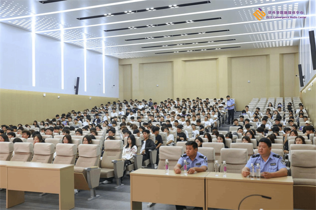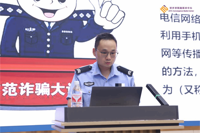 中新河南網(wǎng)9月27日電(文/吳志軒 圖/劉思源) 為進(jìn)一步提高學(xué)生的網(wǎng)絡(luò)電信詐騙識(shí)別和防范能力,維護(hù)同學(xué)們的切身利益,預(yù)防各類網(wǎng)絡(luò)電信詐騙事件,營造和諧平安的校園環(huán)境。9月26日下午,鄭州軟件職業(yè)技術(shù)學(xué)院保衛(wèi)處、學(xué)生工作處聯(lián)合八千派出所在學(xué)校舉辦了預(yù)防電信詐騙知識(shí)講座。鄭州市公安局航空港分局八千派出所民警吳迪擔(dān)任主講嘉賓。
