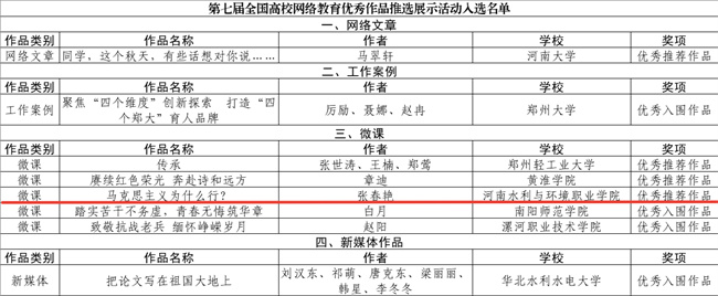 河南水利與環(huán)境職業(yè)學(xué)院思政作品入選第七屆全國高校網(wǎng)絡(luò)教育優(yōu)秀作品