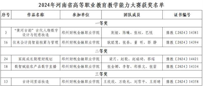 鄭州財稅金融職業(yè)學(xué)院在2024年河南省高等職業(yè)教育教學(xué)能力大賽中榮獲佳績