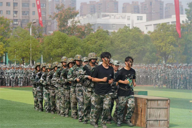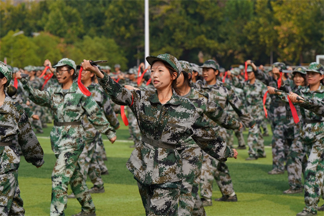 大會在莊嚴(yán)的國歌聲中拉開序幕,經(jīng)歷軍訓(xùn)的4300名新生昂首挺胸,步履鏗鏘,活力飛揚(yáng),彰顯無限激情與青春本色。學(xué)子們以飽滿的精神、挺拔的軍姿、整齊的步伐和洪亮的口號,展現(xiàn)出令行禁止的作風(fēng)與堅(jiān)韌不拔的意志。匯報(bào)表演環(huán)節(jié),擒體拳、匕首操、戰(zhàn)術(shù)表演方陣陸續(xù)出場,他們精神抖擻、英姿颯爽、氣勢如虹,贏得全場師生熱烈掌聲。黨委副書記董娣宣讀2024級軍訓(xùn)工作表彰決定,校領(lǐng)導(dǎo)及在場嘉賓為獲獎的集體和個人頒獎,勉勵受表彰的集體和個人珍惜榮譽(yù),百尺竿頭更進(jìn)一步。
