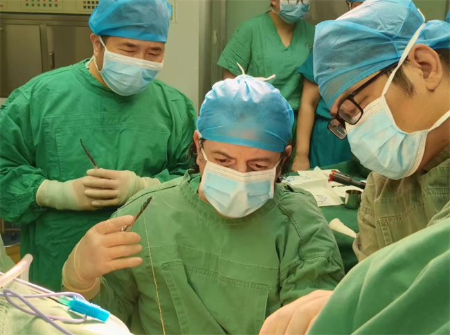 新聞發(fā)布會結(jié)束后,Ali Ahmed Shafik(沙菲克)教授和相關(guān)醫(yī)學(xué)專家到病房進行了查巡。隨后,由Ali Ahmed Shafik(沙菲克)教授主刀做了一臺“教課書式的手術(shù)”,通許第一醫(yī)院的泌尿外科及婦科醫(yī)護人員現(xiàn)場學(xué)習(xí)觀摩,在場的每一位醫(yī)護人員都受益匪淺。