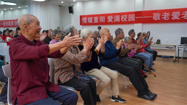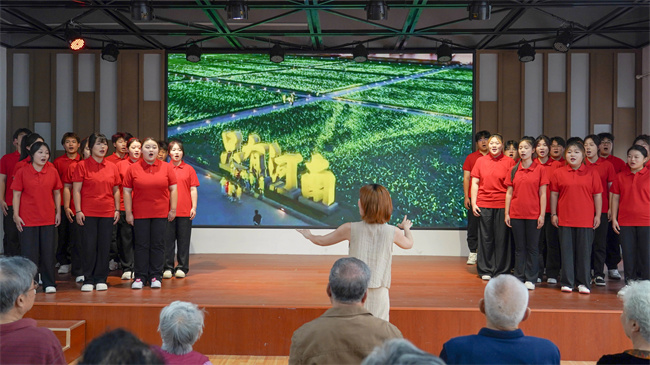 校團(tuán)委、藝術(shù)系組織師生編排歌曲、舞蹈等節(jié)目,充分展現(xiàn)師生的才藝與風(fēng)采,進(jìn)一步豐富了退休教師的文化生活,營(yíng)造出歡樂(lè)祥和的氛圍。退休教師茹良勤吹奏紅色傳統(tǒng)歌曲,增強(qiáng)了學(xué)生愛(ài)黨、愛(ài)祖國(guó)、愛(ài)社會(huì)主義的堅(jiān)定信念。