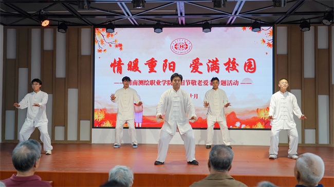 中新河南網(wǎng)10月12日電 秋風(fēng)送爽,丹桂飄香。為大力弘揚(yáng)中華民族尊老、敬老、愛(ài)老、助老的傳統(tǒng)美德,持續(xù)提升長(zhǎng)者的幸福感、歸屬感、獲得感,10月11日,河南測(cè)繪職業(yè)學(xué)院宣傳統(tǒng)戰(zhàn)部、關(guān)工委、工會(huì)、團(tuán)委、藝術(shù)系、體育系聯(lián)合開展了“情暖重陽(yáng),愛(ài)滿校園”敬老愛(ài)老在行動(dòng)專題活動(dòng)。