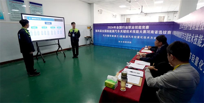 中新河南網(wǎng)10月13日電(王飛龍) 10月11日—12日,第四屆全國新能源汽車關(guān)鍵技術(shù)技能大賽河南省選拔賽在新鄉(xiāng)職業(yè)技術(shù)學(xué)院舉辦。10月11日上午開幕式在實(shí)驗(yàn)樓一樓階梯教室舉行。河南省人力資源和社會(huì)保障廳職業(yè)能力建設(shè)處處長姚磊,新鄉(xiāng)市人力資源和社會(huì)保障局黨組書記、局長劉建學(xué),河南省職業(yè)技能等級(jí)評(píng)價(jià)指導(dǎo)中心副主任支聯(lián)峰出席開幕式,開幕式由省人力資源社會(huì)保障廳職業(yè)能力建設(shè)處副處長朱匯海主持。