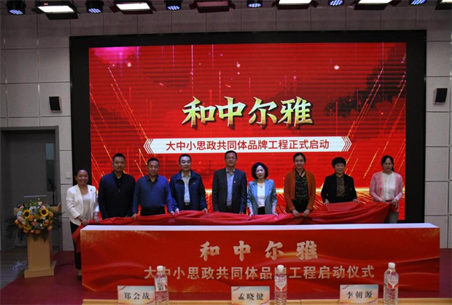 啟動儀式上,出席活動的教體局領(lǐng)導(dǎo)、共同體成員校領(lǐng)導(dǎo)在隆重的音樂聲和熱烈的掌聲中共同啟動“和中爾雅”大中小學(xué)思政共同體品牌工程。