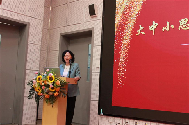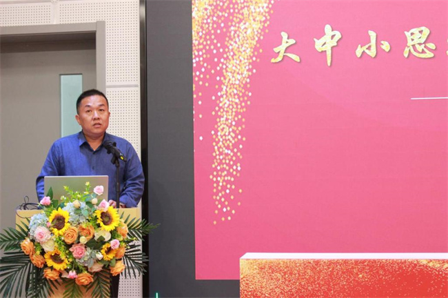 市中區(qū)教育教學(xué)研究中心中學(xué)教研室負(fù)責(zé)人、初中思政教研員孟曉健在致辭中指出:要深刻認(rèn)識到推進(jìn)大中小學(xué)思政課一體化建設(shè),是全面貫徹黨的教育方針、落實立德樹人根本任務(wù)的必然要求,是深化思政課改革創(chuàng)新、實現(xiàn)內(nèi)涵式發(fā)展的現(xiàn)實要求。期待各成員校協(xié)調(diào)聯(lián)動,共搭交流平臺、共創(chuàng)協(xié)同機(jī)制、共研課程建設(shè)、共育教學(xué)成果、共推隊伍建設(shè)、共享合作紅利,共同開創(chuàng)大中小學(xué)思政課一體化新局面。